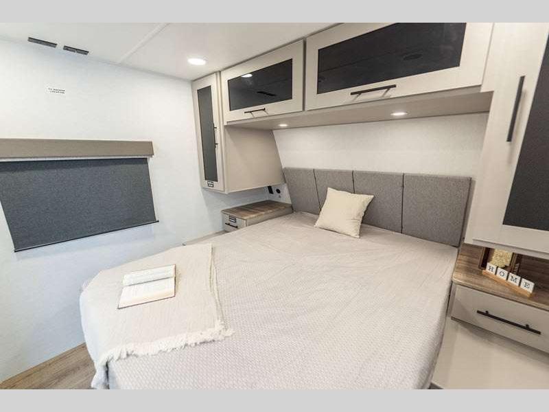 Sleeps 2 Slides 1 Length 23 ft 11 in Ext Height 10 ft 10 in Hitch Weight 568 lbs GVWR 7450 lbs Dry Weight 4992 lbs Fresh Water Capacity 45 gals Grey Water Capacity 45 gals Black Water Capacity 45 gals Available Beds Queen Refrigerator Type 12V Refrigerator Size 10 cu ft Cooktop Burners 3 Shower Size 32" Number of Awnings 1 Water Heater Type On Demand Tankless Awning Info 15' Axle Count 2 Shower Type Radius Solar Wattage 200 watts Similar Floorplans