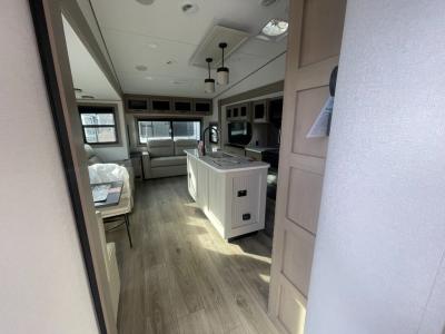 Reflection is built with the Arctic 4-Season Protection package which provides a 35K BTU high-capacity furnace, double insulated roof and front cap, a heated and underbelly with circulating heat, and 12V heat pads on the holding tanks to mention a few features that allow you to travel during any climate. The interior offers residential cabinetry, a deep-seated stainless-steel kitchen sink in the gourmet kitchen, a spacious shower with a glass door, and ductless flooring in the living area to name a few comforts.