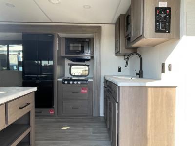 Sleeps 9 Slides 1 Length 35 ft 11 in Ext Width 8 ft Ext Height 11 ft Int Height 6 ft 6 in Hitch Weight 803 lbs GVWR 8995 lbs Dry Weight 7383 lbs Fresh Water Capacity 56 gals Grey Water Capacity 78 gals Black Water Capacity 39 gals Tire Size ST225/75R15LRE Furnace BTU 35000 btu Number Of Bunks 2 Available Beds Queen, Full Refrigerator Type 12V French Door Refrigerator Size 10.7 cu ft Convection Cooking Yes Cooktop Burners 3 Number of Awnings 1 LP Tank Capacity 20 lbs Water Heater Type Furrion Tankless AC BTU 15000 btu TV Info LR 32" TV Awning Info 20' Power w/LED Light Axle Count 2 Number of LP Tanks 2 Shower Type Standard Electrical Service 50 amp Similar Travel Trailer Floorplans